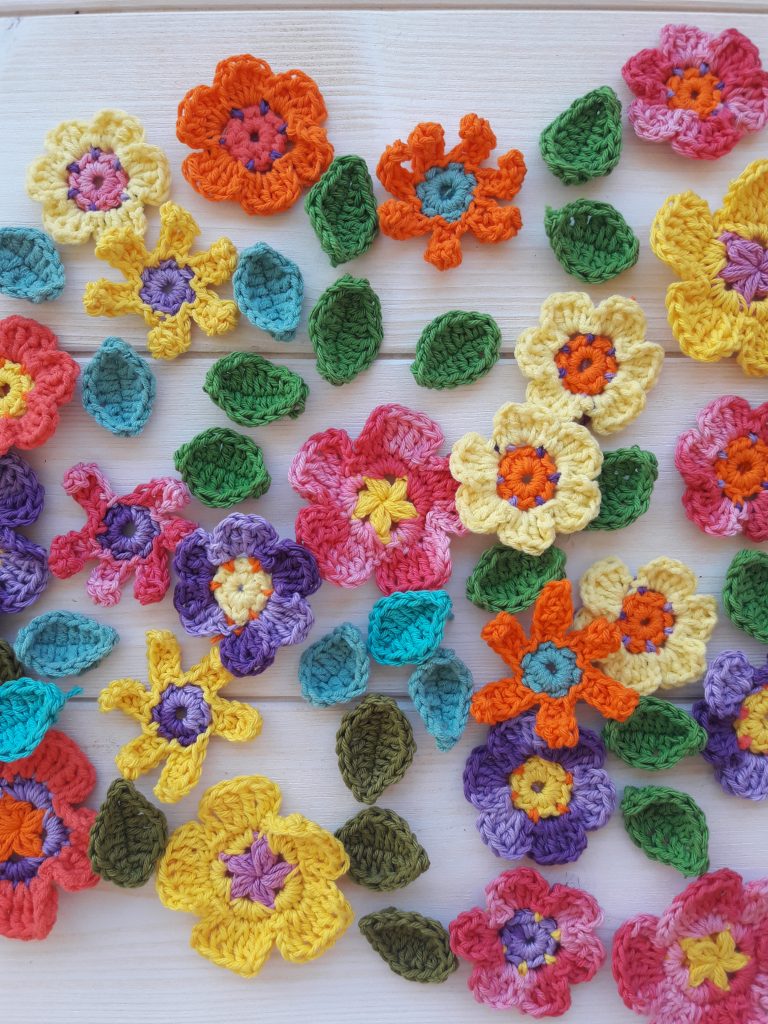 Hoy tengo el placer de compartir con vosotras estas flores que tanto he tejido para decorar mis cestos Frida.